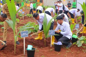 WARTABANJAR.COM, PELAIHARI – Penanaman massal 5.000 bibit pohon kelapa. serentak dipimpin langsung