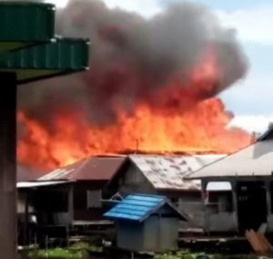 WARTABANJAR.COM, AMUNTAI- Dua rumah milik Ahmad Bakri dan Amat Ijai hangus terbakar,