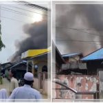 WARTABANJAR.COM, BANJARMASIN – Warga bersama petugas pemadam kebakaran berupaya memadamkan api yang