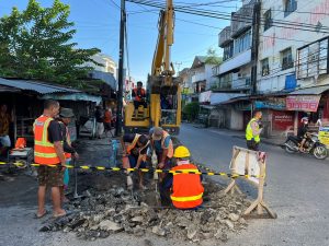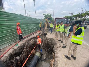 WARTABANJAR.COM, BANJARMASIN- PAM Bandarmasih langsung memperbaiki kebocoran pipa HDPE 500 mm di