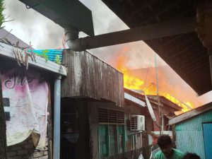 WARTABANJAR.COM, BANJARMASIN – Warga Teluk Tiram dikejutkan oleh kobaran api yang tiba-tiba