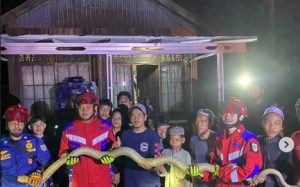 WARTABANJAR.COM, MARTAPURA – Seekor ular king cobra berukuran luar biasa membuat geger