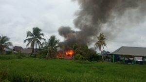 WARTABANJAR.COM, GAMBUT – Pada saat menyalakan alat panggangan ikan terjadi jilatan api