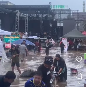WARTABANJAR.COM, DEPOK – Viral banjir menggenangi lapangan tempat acara konser dangdut digelar