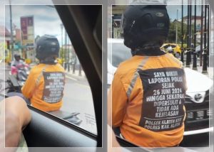 WARTABANJAR.COM, KLATEN – Sebuah video menampilkan seorang pengendara motor memakai jaket bertuliskan