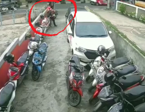 WARTABANJAR.COM, BANJARMASIN – Terekam kamera CCTV seorang pengendara sepeda motor mencuri helm