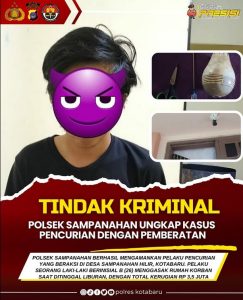 Satroni Rumah Target Saat Penghuni Liburan, Maling di Desa Sampanahan ini Berhasil Gasak Uang Rp3,5 JutaKalsel, Pesisir|Jumat, 25 April 2025 - 12:33 WIBoleh Yayu FathilalWARTABANJAR.COM, KOTABARU- Mencuri, B (26) diamankan petugas Polsek Sampanahan. Aksi pencurian terjadi di