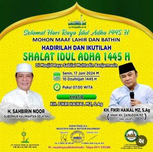 WARTABANJAR.COM, BANJARMASIN – Sholat Hari Raya Idul Adha 1445 H dijadwalkan digelar
