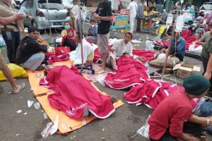 WARTABANJAR.COM – Menteri Sosial Saifullah Yusuf, meninjau lokasi pengungsian korban terdampak banjir