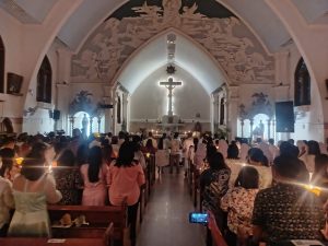 WARTABANJAR.COM, BANJARMASIN – Suasana penuh khidmat menyelimuti perayaan malam Natal di Gereja