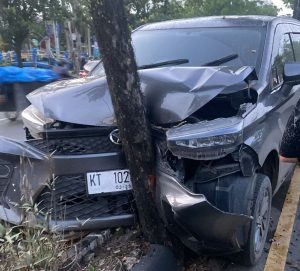 mobil tabrak pohon