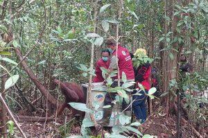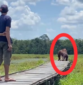 WARTABANJAR.COM, PALANGKA RAYA – Seekor orang utan tertangkap kamera sedang berjalan di