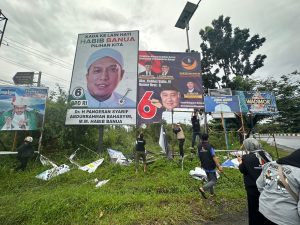 WARTABANJAR.COM, GAMBUT – Penertiban alat peraga kampanye (APK)dipimpin langsung Ketua Panwaslu Kecamatan