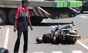 WARTABANJAR.COM, BATI-BATI – Pengendara sepeda motor terkapar bersimbah darah di Desa Banyu
