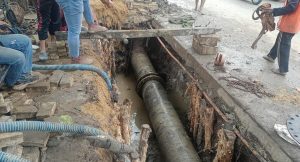 WARTABANJAR.COM, BANJARMASIN – PAM Bandarmasih melakukan perbaikan koneksi pipa HDPE diameter 800