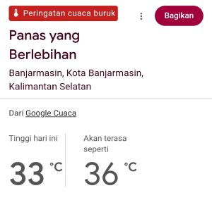 WARTABANJAR.COM – Prakiraan cuaca di wilayah Kalimantan Selatan (Kalsel) masih didominasi hujan