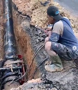 WARTABANJAR.COM, BANJARMASIN – Perbaikan kebocoran emergency pipa 630 mm di Jalan Soetoyo