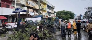 WARTABANJAR.COM, BANJARMASIN- Hujan disertai angin deras diduga mengakibatkan sebuah pohon tumbang di