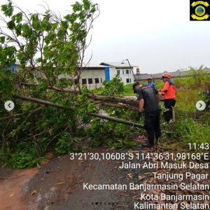 WARTABANJAR.COM, BANJARMASIN – Angin kencang melanda beberapa wilayah di Kota Banjarmasin, Selasa