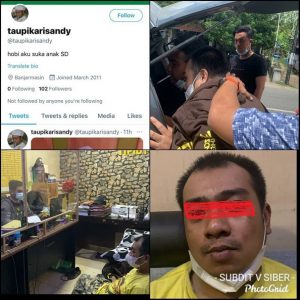 Penyebar Konten Asusila di Tapin Sebut ‘Hobi Aku Suka Anak SD’Kalsel|Senin, 22 Februari 2021 - 21:03 WIBSenin, 22 Februari 2021 - 21:05 WIBoleh Ernawati DjediWARTABANJAR.COM, BANJARMASIN – Polres Tapin jajaran Polda Kalimantan Selatan menangkap seorang pelaku