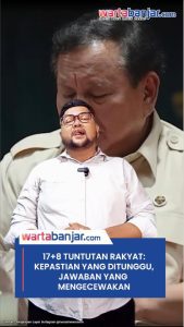 VIDEO – 17+8 Tuntutan Rakyat: Kepastian yang Ditunggu, Jawaban yang MengecewakanVideo|Senin, 8 September 2025 - 22:28 WIBoleh Sabirin Davian WARTABANJAR.COM – Presiden Prabowo Subianto akhirnya menanggapi gelombang 17+8 Tuntutan Rakyat