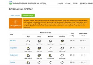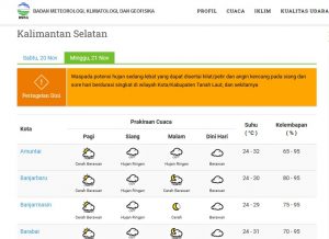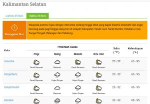 WARTABANJAR.COM, BANJARMASIN-Prakiraan cuaca Kalsel untuk Minggu (21/11/2021), karena masih musim hujan, cuaca