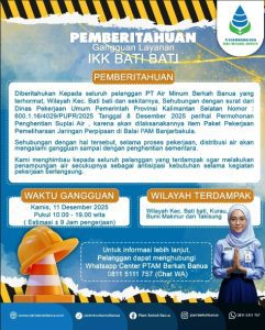 WARTABANJAR.COM, BATULICIN- PTAM Berkah Banua (Perseroda), Rabu (8/4/2026) mengumumkan hari ini ada