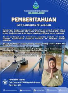 WARTABANJAR.COM, BATULICIN- Distribusi air leding ke sejumlah pelanggan di Bati-bati bakal terganggu