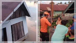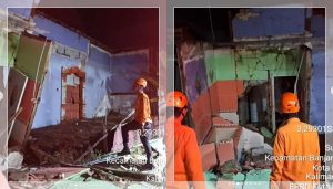 WARTABANJAR.COM, BANJARMASIN – Sebuah rumah dilaporkan ambruk di Komplek Merpati Indah, Jalan