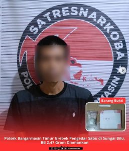 Pengedar Sabu Digerebek di Sungai Bilu, 2,47 Gram Sabu Berhasil DisitaBanjar Bakula, Kalsel|Senin, 18 Agustus 2025 - 18:53 WIBSenin, 18 Agustus 2025 - 18:55 WIBoleh Yayu FathilalWARTABANJAR.COM, BANJARMASIN- Polsek Banjarmasin Timur belum lama ini berhasil menggerebek pengedar sabu di