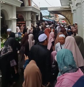 WARTABANJAR.COM, MARTAPURA – Jemaah sudah memadati area belakang kubah Mushola Ar Raudhah