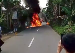 WARTABANJAR.COM, BATOLA – Sepeda motor terbakar di depan Masjid Jamhuri Aisyah, Jalan