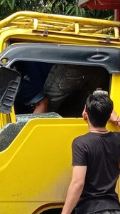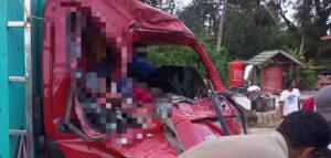 Sopir truk terjepit