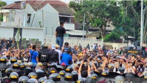 WARTABANJAR.COM, SEMARANG – Suporter PSIS Semarang terlibat bentrok dengan polisi di Stadion