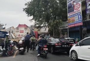 WARTABANJAR.COM, BANJARMASIN – Kemacetan terjadi di area Pasar Sudimampir, Kelurahan Kertak Baru