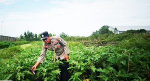 WARTABANJAR.COM, GAMBUT- Polsek Gambut panen terong hasil budidaya mereka. Terong-terong tersebut lantas
