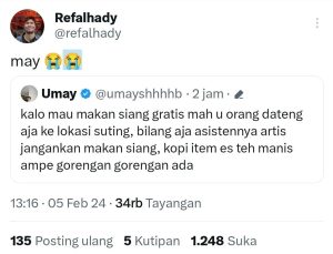 ‘Nyinyir’ Program Makan Gratis, Umay Shahab ‘Digeruduk’ Warga XBerita|Selasa, 6 Februari 2024 - 18:06 WIBSelasa, 6 Februari 2024 - 19:15 WIBoleh RestuWARTABANJAR.COM – Artis Umay Shahab jadi sasaran kemarahan warga X atau twitter