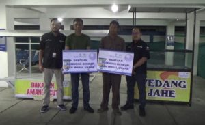 WARTABANJAR.COM, BANJARMASIN – Bank Kalsel menyerahkan bantuan Rombong Barakah kepada empat pelaku