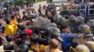 Permintaan Tak Dipenuhi, Massa Aksi Paksa Masuk ke Kantor DPRD KalselBanjar Bakula, Kalsel|Kamis, 15 Januari 2026 - 14:49 WIBKamis, 15 Januari 2026 - 14:53 WIBoleh Yayu FathilalWARTABANJAR.COM, BANJARMASIN- Aksi Unjuk Rasa (Unras) Mahasiswa di depan Kantor DPRD Kalsel,