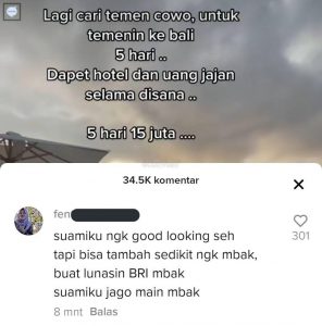 Tawarkan Suami Temani Wanita Lain, Akun ini Minta Lebih dari Rp 15 JutaBerita|Jumat, 17 Juni 2022 - 21:11 WIBJumat, 17 Juni 2022 - 21:11 WIBoleh RestuWARTABANJAR.COM – Komentar sebuah akun dengan foto profil wanita menghebohkan dunia maya,